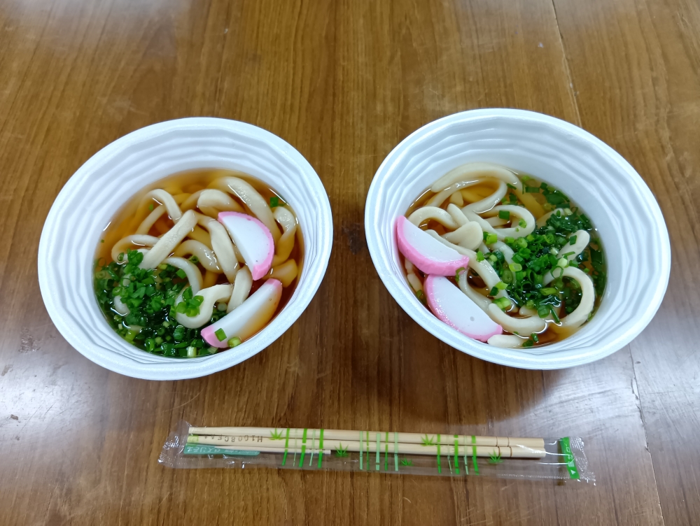 食べた感想は、「食べ応えのあるうどんだな。」「塩加減がやや強いかも。」「伊勢うどんのようだな。」などなどありましたが、結局は両チームともに「どっちもどっちだな。」という結論になりました。