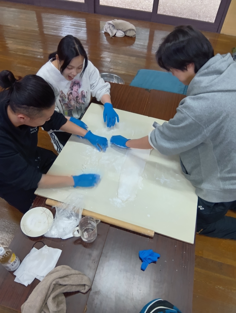 活動①は、「手打ちうどん」に挑戦。