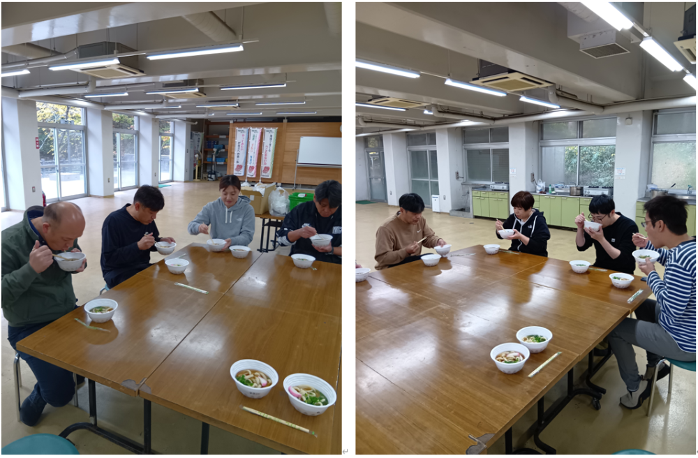 食べた感想は、「食べ応えのあるうどんだな。」「塩加減がやや強いかも。」「伊勢うどんのようだな。」などなどありましたが、結局は両チームともに「どっちもどっちだな。」という結論になりました。